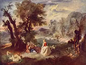 Quillard's father was a woodworker. He began to study art at a very early age, possibly with Antoine Watteau, or at least some of his close associates.[1] When he was ten or eleven, his paintings were deemed such perfect copies of Watteau's style that Cardinal Fleury presented some to King Louis XV, who granted Quillard a pension.