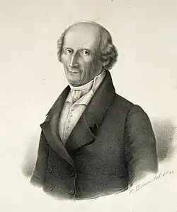 Pierre-Louis Guinand (1748–1824) was a Swiss lens maker.[1][2][3][4][5][6][7][8][9][10][11][12] who in the late 1700s came up with a breakthrough for making better quality and larger glass, and in time went on to teach a young Fraunhofer at Joseph von Utzschneider's (1763-1840[13]) glassworks, and eventually started his own optical glass works.[14] Guinand would supply glass for the Paris Observatory telescopes and also Cauchoix.[14] He was a pioneer in the manufacture of optical glass for microscopes, telescopes, glasses and other optical instruments.