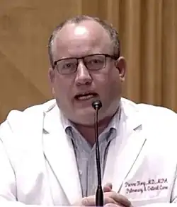 Pierre Kory is an American critical care physician who gained attention during the COVID-19 pandemic for advocating widespread off-label use of ineffective drug treatments for COVID-19, as president and co-founder of the Front Line COVID-19 Critical Care Alliance (FLCCC).[1][2] Kory testified twice to the U.S. Senate regarding COVID-19. During his testimony in December 2020, Kory erroneously claimed that the antiparasitic medication ivermectin was a "wonder drug" with "miraculous effectiveness" against COVID-19.[3][4]