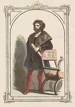 Pierre de la Rue (c. 1452 – 20 November 1518) was a Franco-Flemish composer and singer of the Renaissance. His name also appears as Piersson or variants of Pierchon and his toponymic, when present, as various forms of de Platea, de Robore, or de Vico.[1] A member of the same generation as Josquin des Prez, and a long associate of the Habsburg-Burgundian musical chapel, he ranks with Agricola, Brumel, Compère, Isaac, Obrecht, and Weerbeke as one of the most famous and influential composers in the Netherlands polyphonic style in the decades around 1500.