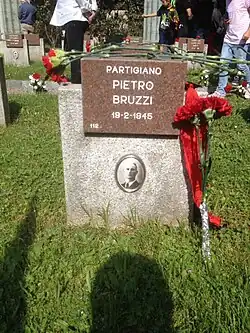 Following his repatration, he was acquitted of the charges of conspiracy that had been on the books since the 1920s.[2] Nevertheless, he was deported to the penal colony on Ponza, where he was imprisoned for five years.[1] On 8 July 1940,[2] he was released and decided to return to work in Milan. After the fall of the Fascist regime in Italy, in 1943, he linked up with his old anarchist comrades and joined the Italian resistance movement, establishing the Malatesta Brigade. He also covertly attempted to publish the newspaper L'Adunata dei libertari, but only a single issue was printed,[1] on 18 July 1944.[2] He was captured in Melegnano by the Nazis,[3] who imprisoned him at San Vittore Olona.[1] On 19 February 1945, he was shot by the Nazi Schutzstaffel (SS), in reprisal for the fascist losses in the Italian campaign.[2] His comrades subsequently renamed their unit, in his honour, to the Bruzzi-Malatesta Brigade.[1]