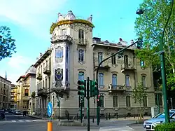 - Former Birrificio (brewery) Bosio & Caratsch and attached villa (1907), corso Regina Margherita 165, corner of via Bonzanigo[24]