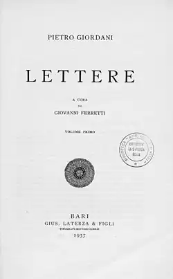 - ^ Maria Paola Macioci. "Chi era Pietro Giordani, lo scrittore piacentino che fu amico di Giacomo Leopardi". SoloLibri.net (in Italian). Retrieved 2025-01-18.