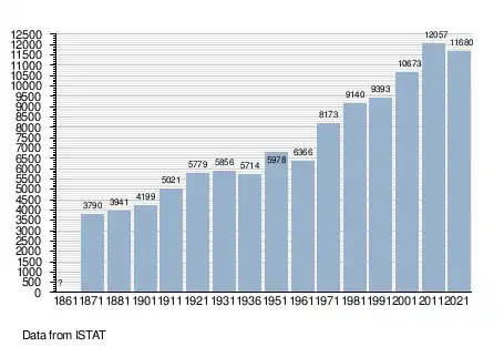 - ^ "Superficie di Comuni Province e Regioni italiane al 9 ottobre 2011". Italian National Institute of Statistics. Retrieved 16 March 2019.