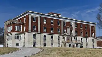 Pike County Hospital, also known as the Smith-Barr Manor, is a historic hospital building located at Louisiana, Pike County, Missouri. It was built in 1927–1928, and is a four-story, rectangular, Classical Revival style red brick and stone building. It has a flat roof with a two-story square red brick penthouse. It features a main entrance with decorative stone surround and cartouche, and additional terra cotta and stone ornamentation. It was converted to a nursing home in 1975.[2]: 6
