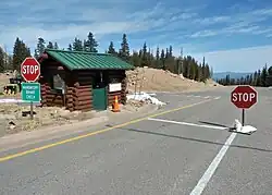 The Pikes Peak Highway is a 19-mile (31 km) toll road that runs from Cascade, Colorado to the summit of Pikes Peak in El Paso County, at an altitude of 14,115 feet (4,302 m).[1] It is at least partially open year-round, up to the altitude where snow removal becomes excessively difficult.