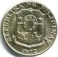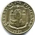 | 5¢ | 18.6 mm | 2.5 g | Brass | Plain | Melchora Aquino | State title, coat of arms, year of minting | May 5, 1967 | Jan 2, 1998 | ||