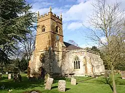 The earliest parts of the Church of England parish church of St Mary the Virgin are mid-13th century. They include the Early English chancel, which Pevsner and Wedgwood praised as "uncommonly fine" and having a priest's doorway "of a design which may well be unique". The chancel also has a double piscina[2] and a double aumbry.[3] In about 1400 a south aisle with a two-bay arcade was added to the nave. The nave roof and west tower are Perpendicular Gothic,[3] and the tower was altered and increased in height in the 15th century.[4] The chancel has a 17th-century hammerbeam roof. In the 19th century the south aisle was rebuilt, and in 1845 a north aisle with a three-bay arcade was added.[3] The church is a Grade II* listed building.[5]