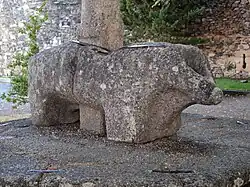 The pillory is unique, owing to its base, resembling a proto-historic, Lusitanian bore carved in a rough, stocky appearance, that includes short legs.[1]