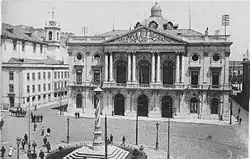 On 8 April 1633, the municipal government debated the construction of a spring in the Praça do Pelourinho Velho, in order to improve the quantity and quality of water in the city.[2] Sometime in the 17th century, the Senate approved the demolition of the pillory. The municipality later (1690) authorized (by the monarch) to construct homes along the river.[2] On 16 December 1705, D. Luís Baltazar da Silveira solicited authorization to build a home on the site of the old pillory, in which he would pay 50$000 réis annually and donation to the city of 600$000 réis.[2] The King approved the rental on 4 February 1706. On 20 November 1738, the municipal council consulted the King to afix the pillory, with the usual locals debated: the Ribeira, Terreiro do Paço, Remolares, Boavista and Confeitaria.[2] Before the earthquake of 1755, the Largo do Pelourinho was located at the place where the last block of the Rua do Comércio is located, between the streets of Fanqueiros and Madalena.[1] This border was delimited to the south by the Fernandine Wall and gave passage to the landfill of the Ribeira, through the Portas da Ribeira.[1] Flanking this stood the customs house and "house of weights and measures", and the buildings that housed the Senate.[1]