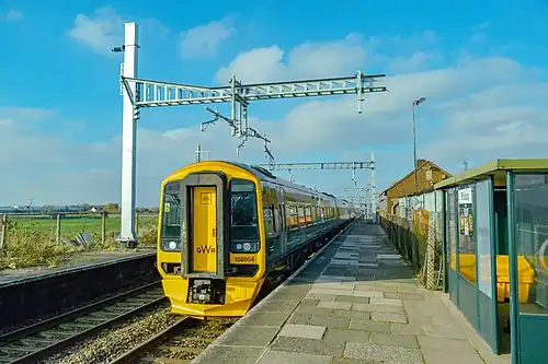 ![]() A Great Western Railway Class 158 train passes Pilning in 2018. | |||||