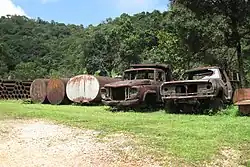 Also surrounded by the national park is the Somsak Mining Forest Glade, a guesthouse set in the grounds of a former mine. It is owned and operated by Glennis Setabundhu or Auntie Glen, an Australian who moved with her Thai husband Somsak to the country in the 1960s. Following the mine's closure, and her husband's death in 1994, Glennis reopened the mine as a guesthouse in order to keep the place alive and support the mine's former workers.[12] Known for its remote location in the middle of the forest, access to the Forest Glade requires a 5-kilometre (3.1 mi)-drive via all-terrain vehicle. The nearby Chet Mit Waterfall (น้ำตกเจ็ดมิตร, "seven friends waterfall") is within the mine's concession area.[13][14]