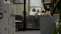![]() The first scene, in which salesman Jim Halpert (John Krasinski) and manager Michael Scott (Steve Carell) talk over the former's financial quarterlies | |