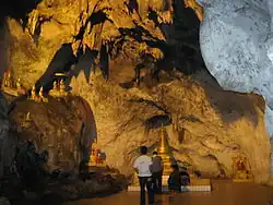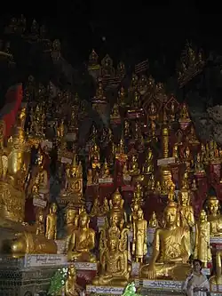 The Pindaya Caves (Burmese: ပင်းတယရွှေဥမင်, pronounced [pɪ́ɰ̃dəja̰ ʃwè ṵmɪ̀ɰ̃]; officially ပင်းတယရွှေဥမင်သဘာဝလိုဏ်ဂူဘုရား), located next to the town of Pindaya, Shan State, Burma (Myanmar) are a Buddhist pilgrimage site and a tourist attraction located on a limestone ridge in the Myelat region. The area is part of the ancestral homeland of the Danu people. There are three caves on the ridge which runs north-south, but only the southern cave can be entered and explored. It is not known whether the other two penetrate for any extended distance into the hillside. Scholars have been pushing for the site's inclusion in the UNESCO World Heritage List.