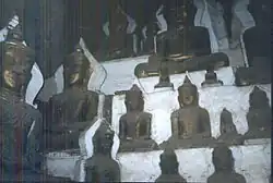 The modern day entrance dates from 1925 when the entrance to the cave was enlarged by explosives, destroying some valuable images and epigraphs in the process. A steel structure was erected to accommodate the many pilgrims. Dedication inscriptions from this renovation indicate a wide range of donors, not only from the Theravada community, but also from the Hindu, Chinese and even Muslim communities. During this renovation, some unique images were removed to a nearby monastery. Unfortunately, these images were destroyed during World War II in a bombing raid. An elevator was added in more recent times.