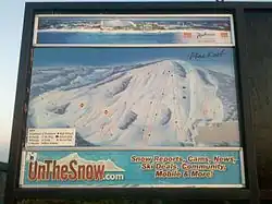 Pine Knob is a hill located in Independence Township in Oakland County, near Clarkston, Michigan. The hill is classified as a summit.[3] It extends from Waldon Road to the south to Clarkston Road to the north, and from Sashabaw Road to the west to Pine Knob Road to the east.[4] With an elevation of 1,201 feet, Pine Knob is the second-highest ski resort in Southeast Michigan, behind only Alpine Valley Ski Area in White Lake.[3] It is home to Pine Knob Ski Resort, Pine Knob Music Theater, Pine Knob Mansion, Pine Knob Golf Club, as well as residential homes.