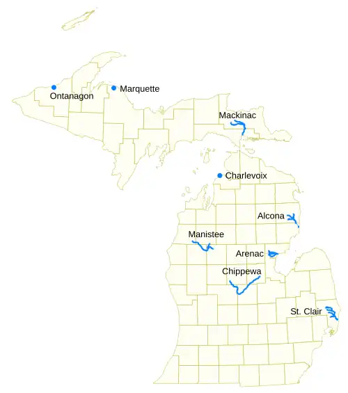There are also at least seventeen streams known as Pine Creek in Michigan which may sometimes be referred to as Pine River, as well some other variants.[25] Among them are:
