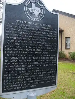 - ^ a b McCroskey, Vista K., "PINE SPRINGS, TX (SMITH COUNTY)," Handbook of Texas Online. URL accessed 06 March 2012. Published by the Texas State Historical Association.
