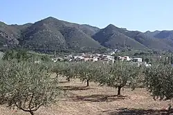 It is situated at the eastern extreme of the Sierra Grossa mountain range, a karstic environment with a strong predominance of limestone soils with dolomites. The village itself is located at the head of a south-facing horse-shoe shaped valley, the surface of which is composed of reddish marl deposited by water erosion originating in the mountains that lie at its north-easterly and northern extremes.