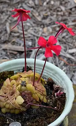 Pinguicula laueana is a perennial rosette-forming insectivorous plant native to the state of Oaxaca in Mexico.[1] It is one of only two species of butterwort known to have a red flower, the other being P. caryophyllacea. As Pinguicula lauana it has gained the Royal Horticultural Society's Award of Garden Merit.[2]
