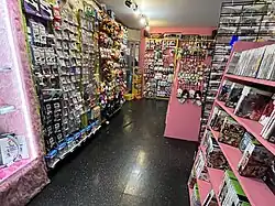 The store also offers merchandise such as toys and Pink Gorilla-branded T-shirts, hats, beanies, and stuffed pink gorillas fashioned after the store mascot Pinky G.[7] As a sales promotion, the store gives customers who walk in wearing store-branded T-shirts a discount on purchases.[7][8]