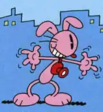 The comics debuted in the children magazine Il Giornalino in October 1973 and through the years Pinky became the most loved character and the mascot of the magazine.[1][2] The series features a small eccentric pink bunny named Pinky, who works as a photojournalist for a newspaper ("La notizia") run by a vain, tyrannical and selfish elephant named Perry. Its mission is to photograph any strange event or bizarre citizen.[3]