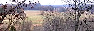 - The Eastern Citadel, an earthen geometric enclosure located approximately 1,500 metres (4,900 ft) east of Sauls' Mound. William Myer gave the enclosure its present name in the early 20th century, although archeologists believe its function to have been primarily ceremonial rather than defensive. The walls form a near-perfect semicircle with a diameter of 366 metres (1,201 ft), enclosing approximately 06 square kilometres (1,500 acres). The height of the walls is, on average, approximately 1.5 metres (4.9 ft). The enclosed area is not level, with the western edge being approximately 12 metres (39 ft) lower than the eastern edge.[4]