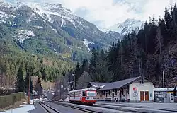The Pinzgauer Lokalbahn (formerly Pinzgaubahn or Krimmler Bahn) is a narrow-gauge railway in Salzburg in Austria . The 53-kilometre (33 mi) railway follows the Salzach valley from Zell am See to Krimml through the Pinzgau mountains. The section between Mittersill and Krimml was damaged by flooding in 2005 and reopened in September 2010.[ 1] [ 2]
