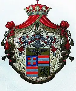 A third branch of the family, called "Galasso line" after another of Alberto II's brothers—which was forcibly excluded from the coregency over Carpi in 1469—, is still flourishing in Rome, the UK and the US.[3] In the second half of the 19th century this branch of the family sued the Kingdom of Italy as the legal successor of the Este States, and succeeded in exacting a conspicuous compensation of 50,000 gold florins for the unfair seizure of the fiefdom of Carpi by the Este family, in violation of the aforementioned 1336 "Sovereign-to-Sovereign" agreement.[4] In 1930 the King of Italy Victor Emmanuel III of Savoy again bestowed upon Don Manfredo, head of the Galasso family line, the title of Prince Pio di Savoia.[3]
