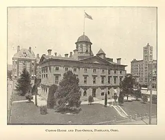 - ^ Carolyn Pitts (February 17, 1977). "National Register of Historic Places Inventory-Nomination: United States Courthouse, Custom House and Post Office / The Pioneer Courthouse" (pdf). National Park Service. and Accompanying 5 photos, exterior and interior, from 1973 and undated. (367 KiB)