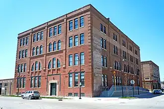 The Pioneer Implement Company, also known as the International Harvester Transfer House, is a historic building located in Council Bluffs, Iowa, United States. Eli Shugart, Ferdinand Weis and F.R. Davis formed Pioneer Implement Company in 1893, and they built the four-story Late Victorian section of the building the same year. This was during a period of growth in the city's "Implement District," which is located to the south of the central business district. What made this company standout from the others in the district is that it was locally owned and operated agricultural implement business, rather than one owned by a factory from the east.[2] The company went out of business in 1915 and the building was taken over by International Harvester, which owned the building next door. They added the single-story brick addition to the south in 1927. When IH closed their Council Bluffs operation in 1964 they were the only farm implement that was still in business in the Implement District.[2] The building was occupied by various businesses after that, including United Parcel Service. Artspace, Inc. acquired the building and converted it into live/work spaces for artists. The building was listed on the National Register of Historic Places in 2008.[1]