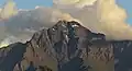 Pioneer Peak (Ahtna: Tnel'aay; Dena'ina: Dnal'iy) is a 6,398-foot (1,950 m) mountain in the Chugach Mountains in the U.S. state of Alaska. Located beside the Knik River just nine miles (14 km) south of Palmer and about six miles outside the Municipality of Anchorage limits, it is a prominent landmark in the Matanuska-Susitna Valley, as well as a popular hiking destination. Its Ahtna name means "the object is standing still" and its Dena'ina name means "the one that watches us".[3] The name was given in 1939 in honor of the pioneers of the Matanuska agricultural colony of the mid-1930s.[2] The Pioneer Ridge Trail leads up the eastern shoulder, beginning below 200', it allows access to the South summit. The North summit, and true summit of Pioneer Peak does not have a trail, and advanced mountaineering techniques are required. The first ascent of this peak was made June 1936 by Vernon Haik and John Wolffe via the Northwest Face.[4]