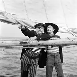 Pipo de Clown is a character created by writer and artist Wim Meuldijk, which became famous as the lead character of a popular early Dutch television series[1] also written by Meuldijk, and which was subsequently popularized in movies and on records. The best-known of Pipo-actors was Amsterdam actor Cor Witschge, who played the part in the television series from 1958 to 1968 and from 1974 to 1980. The regular Pipo cast often performed in theaters and for company occasions. Pipo returned to the mainstream in the 2003 movie Pipo en de p-p-Parelridder, and in the 2009-2010 theater season with the musical Pipo en de Gestolen Stem.