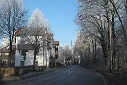 The Pippinger Straße starts at the railway underpass west of the Munich Pasing station and touches the Villenkolonie Pasing II. It crosses the former hamlet of Pipping. At the height of the former farms of Pipping is also the village church of St. Wolfgang, which was built between 1478 and 1480. Then the Pippinger Straße passes the Blutenburg Castle and, after crossing the Verdistraße, forms the main axis in the village core of Obermenzing. Finally, it leads into Von-Kahr-Straße.