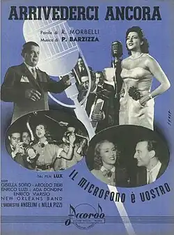 In 1948 he composed the soundtrack for Fifa e Arena with Totò and Isa. His "Paquito Lindo" set a sales record for 78 rpm sides. "Ay Nicolete" was another hit. He made many tracks with Totò, including "The Turk from Naples", "Six wives of Bluebeard", "Misery and Nobility", "Totò to Hell". With Macario, Walter Chiari, Marcello Marchesi and other actors. In 1949 he won the Silver Microphone Award as best Italian Orchestra. "The enormous discography of Cetra Orchestra with Barzizza between 1936 and the late 1948 has not rebuilt yet, because of difficulties with such a huge opera. Bombing of Second World War destroyed the archives of Italian labels, with original sheets.[2] In a comment Barzizza spoke of about 3500 78 rpm discs; this means almost 7000 sides, referring to his production between 1931 and 1936.