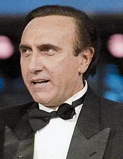 In 1968, Baudo hosted the Sanremo Music Festival for the first time; he eventually hosted the festival 13 times, the last one in 2008, also serving as artistic director in numerous editions.[2][4][5] On the opening night of the Sanremo Music Festival 1995, shortly after the beginning of the show a man, Pino Pagano, climbed onto of the gallery of the Teatro Ariston threatening to commit suicide by jumping; he was persuaded to step back by Baudo himself amid the applause of the audience.[4][6] He also hosted two editions of Canzonissima, six editions of Un disco per l'estate, as well as numerous editions of Domenica in and Fantastico.[2]