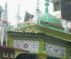 A Hindu cowman named Kalu Ghosh later discovered his decaying body in the forest whilst looking for his cow, and took it to Sheikh Dara Malik. The body was buried near Gorachand's half-built mosque on the banks of the Bidyadhari River. The area came to be known as Haroa from har meaning bone as Gorachand's body was in a decayed state when it was being buried according to Islamic practice.[11][12] The guardians of the tomb continue to be descendants of Sheikh Dara Malik including Peyar Bakhsh, after whom the village of Peyera is named after, as well as Muhammad Shahidullah's father Mafizuddin Ahmed. Shahidullah did not serve in the mausoleum.[13] The Sultan of Lakhnauti donated 1500 bigha land for the maintenance of the tomb of Pir Gorachand in Haroa.[1] The tomb is famous in Basirhat and throughout West Bengal, with hundreds of both Muslim and Hindu devotees still visiting daily.[14] In honour of Kalu Ghosh, Hindu milkmen bring milk to the shrine on his urs, which is 11 Falgun (February), every year.[1] He is one of the many Sufi saints in Bengal whose blessings are sought by both Muslims and Hindus.[15][16] There is an annual fair held in his memory in the village.[17]
