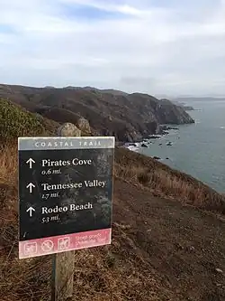 Pirates Cove is an embayment in Marin County, California, United States, between Muir Beach and Tennessee Cove.[1] A trail leads from the terminus of the California Coastal Trail to a small beach area, surrounded by steep hills and coastal scrub.[2]