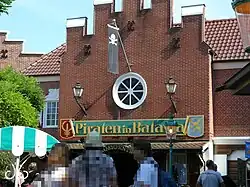 Pirates in Batavia (2020) (German Piraten in Batavia[1]) is a water dark ride at Europa-Park that opened originally in 1987 and reopened on July 28, 2020. It was rebuilt in place of the old ride by the same name, which burned down in a fire in 2018. The ride was built by Mack Rides and was (and still is) situated in a large hall at the Dutch themed area, which was designed as a typical Dutch clinker brick building from the outside. Even the rebuild front view of the building, looks very similar to the original outside of the ride, with the only difference of a bigger front window and the removal of the Pirate flag (plus some other minor changes).