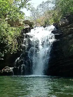 The municipality contains part of the 2,833 hectares (7,000 acres) Pirineus State Park, created in 1987.[6] Waterfalls are the primary tourist attraction for Pirenopolis and Corumbá. Around the town, in a distance of 15 km., there are more than twenty spectacular waterfalls with pristine water. Some of them are enormous such as the Salto de Corumba (which disappeared for decades when prospectors diverted the waters for dredging). Other waterfalls are formed by a series of cascades. Many are on private property and are operated as a business. Other falls can be found on hiking trails. One of the longest rivers in the state of Goiás, the Corumbá River has its source near Pirenópolis.
