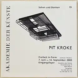 Pit Kroke (born Rolf Peter Kroke: March 1, 1936 Fürstenwalde/Spree, Germany - November 1, 2016 Berlin, Germany) was a German artist and architect.