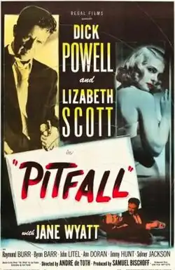 Pitfall is a 1948 American film noir crime film directed by André de Toth. The film is based on the novel The Pitfall by Jay Dratler, stars Dick Powell, Lizabeth Scott, and Jane Wyatt, and features Raymond Burr.
