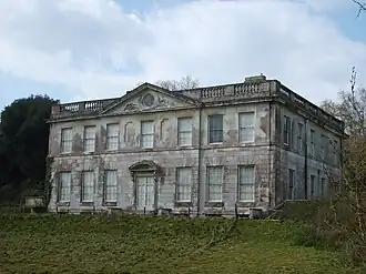 The main house is augmented by two 19th-century lodges,[5][6] an 1840s stable block,[7] a shell house,[8] probably late 18th century, all Grade II listed and standing within a Grade II listed park.[9] in addition there is an ice house, also probably 18th century, and a late 19th-century tower.