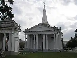 While British administrators and Europeans resided at the northern end of Pitt Street, and built the St. George's Church in 1816, the Indian Muslim community moved into the southern part of Pitt Street. The Indian Muslim presence can still be seen to this day, particularly by the Kapitan Keling Mosque which was built in 1801.