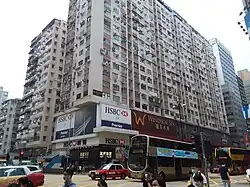 The street features with multi-storey buildings mixing use of commercial and residential, officially known as composite buildings, typical in urban area of Hong Kong.[14][15]