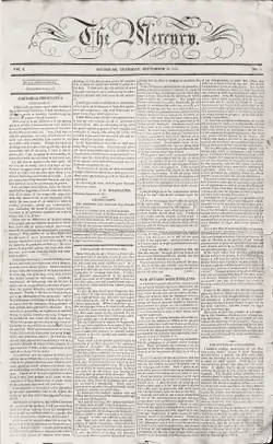 The Pittsburgh Mercury was a weekly newspaper published in Pittsburgh, Pennsylvania from 1811 to the early 1840s. Originally almost unpartisan, it became a mouthpiece of the Democratic-Republicans, and later of the Jacksonians and Democrats.[1] It was a progenitor of the Pittsburgh Post, which in turn was succeeded by the Pittsburgh Post-Gazette.