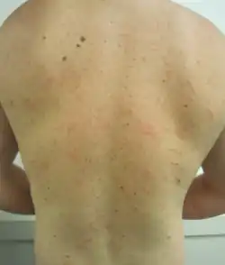 | Pityriasis rosea on the back showing a "Christmas tree" pattern | |