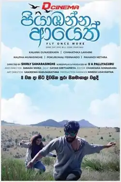 Piyabanna Ayeth (Fly Once More) (Sinhala: පියාඹන්න ආයෙත්) is a 2022 Sri Lankan Sinhala romantic road film directed by Shirley Samarasinghe in his directorial debut and produced by Udara Palliyaguru for Guththila Films and D Cinema.[3][4] The film stars Kalana Gunasekara and Chamatka Lakmini in lead roles, whereas Kalpa Munasinghe, Pokurumali Fernando, Marcus Fernando, and child actress Pahandi Nethara made supportive roles.[5][6]