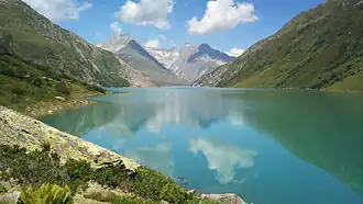 ![]() View from Lake Curnera, Piz Giuv lies behind the lower summit of the Crispalt (centre left) | |