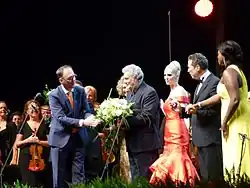 Growing up working in his parents' zarzuela company in Mexico, Domingo has since regularly promoted this form of Spanish opera. He also increasingly conducts operas and concerts and was the general director of the Los Angeles Opera in California from 2003 to 2019.[10][11] He was initially the artistic director and later general director of the Washington National Opera from 1996 to 2011. He has been involved in numerous humanitarian works, as well as efforts to help young opera singers, including starting and running the international singing competition, Operalia. Since 2019 he has performed continuously on stages in Berlin, Budapest, Cologne, Graz, Madrid, Mérida, Milan, Monte Carlo, Moscow, Munich, Palermo, Rome, Salzburg, Sofia, Verona, Versailles, Vienna and Zurich.